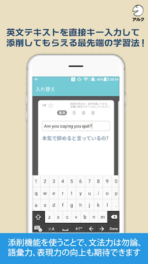 ・ This application is equipped with "EasyWriting" that corrects the English sentences entered by the user in real time.
