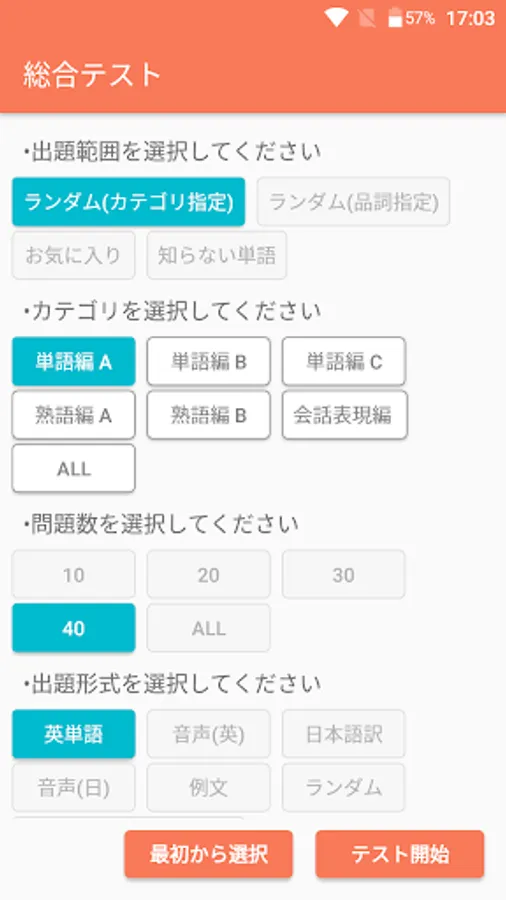・ By setting the question range to "unknown words", you can concentrate on learning words that you cannot remember.