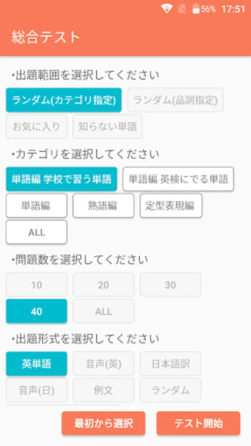 ・ By setting the question range to "unknown words", you can concentrate on learning words that you cannot remember.