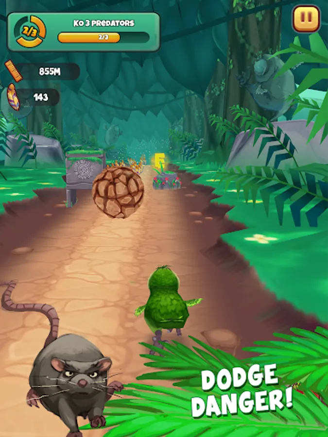 * Oncoming obstacles, from predators to rolling rocks. Get Running, Jump, Dodge and Swipe to avoid them!