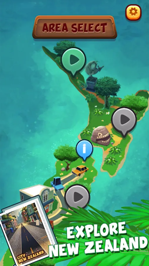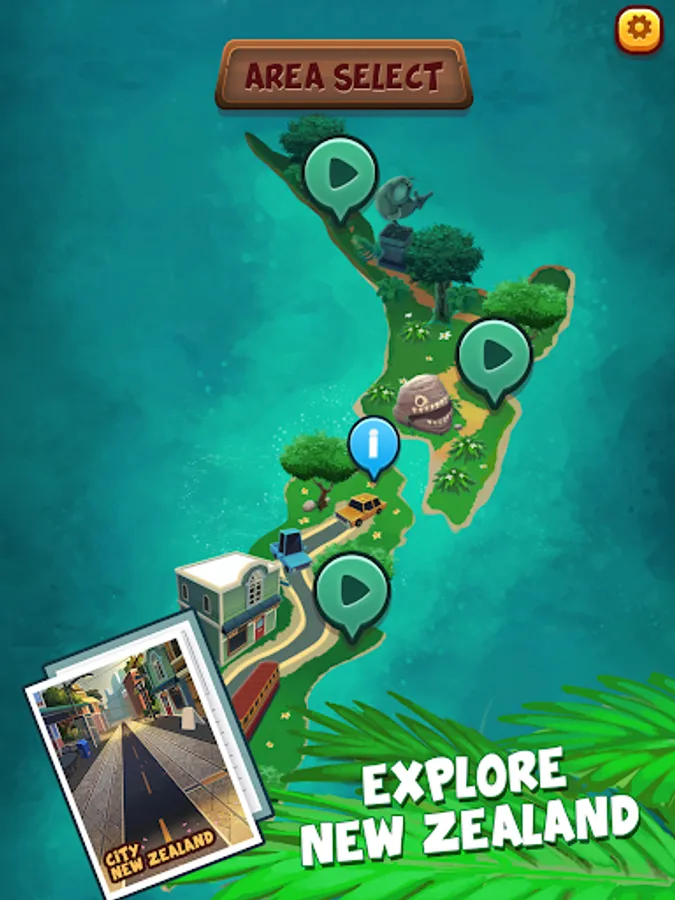 * Four environments to traverse in an endless-runner game inspired by New Zealand's unique and varied landscape. From dense forests to idyllic coastlines and cities crammed with traffic terror