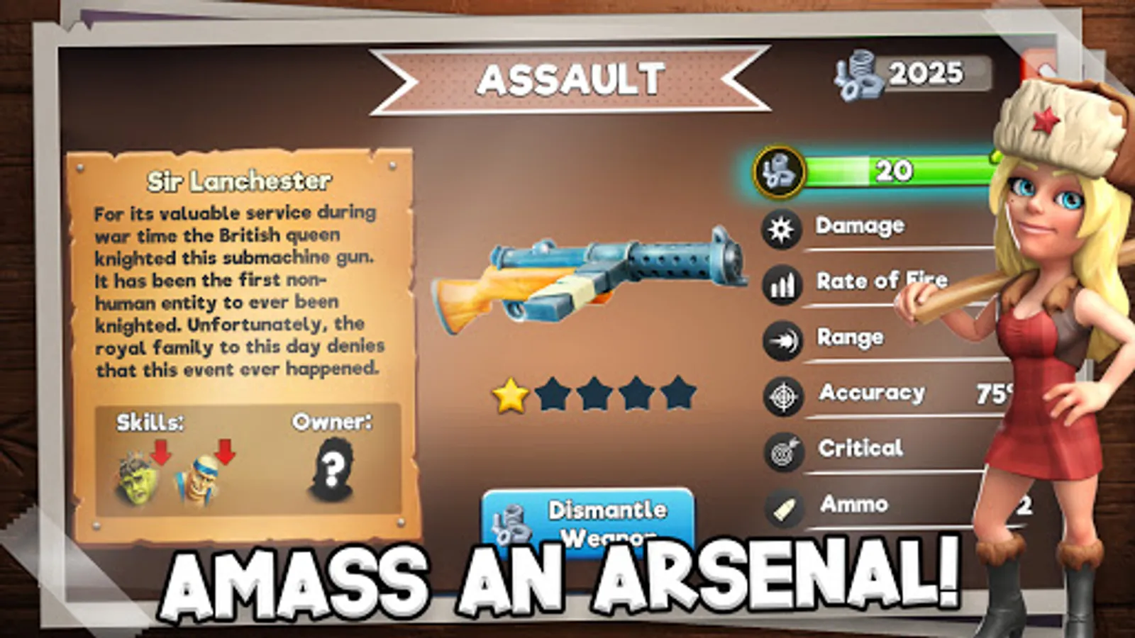 Gather a team of 60 unique survivors, each with their own personality and skills, to help you in your battle for survival. With more than 100 weapons to choose from, you must outwit and outlast the evolving zombie threat. The zombie horde will clash with your base from all sides, and it's up to you to command your team and defend your fortress until daylight.