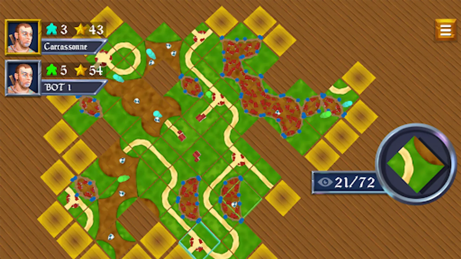 Welcome to the battle of Carcassone, a multiplayer board game offline and online in 3D where you have to conquer the city. An awesome interactive tile and tactic board game to play with friends online, or you can also play alone offline with an improved AI. Discover the tile-based game Conquest of Carcassone, fight in this war where players place their tiles to build a medieval city empire!