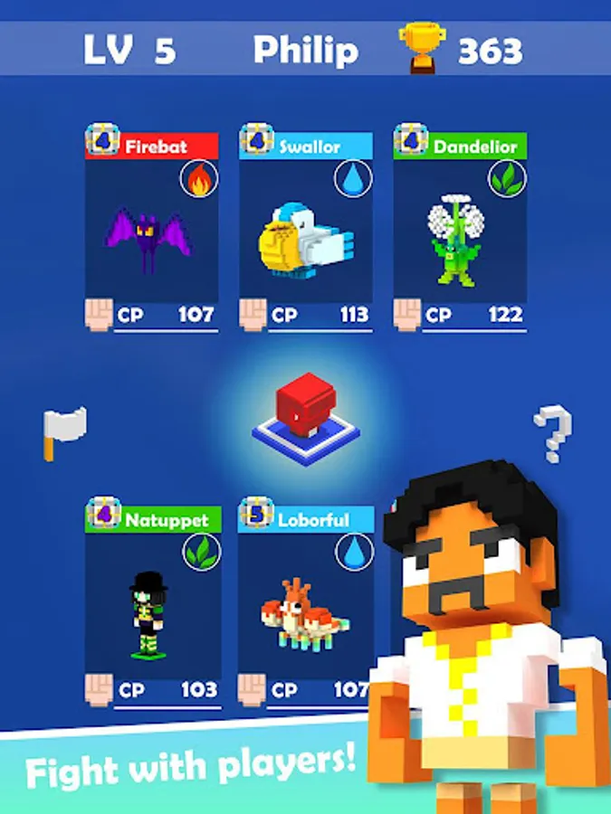 Build a team with 3 pixemons to fight other people.The winner will receive the honor and cups!Train your pet to make it stronger enough to win!