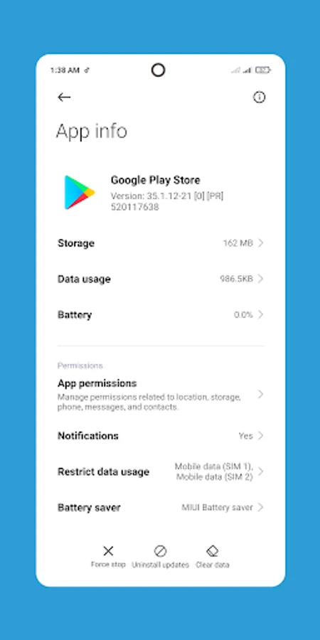 Step 4 : When uninstall updates complete.the Play Store app will back to original version.