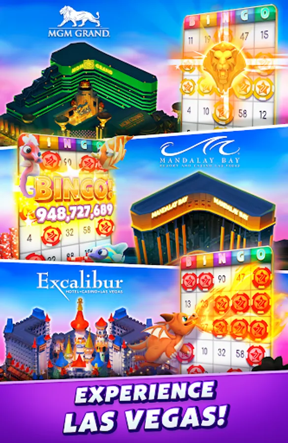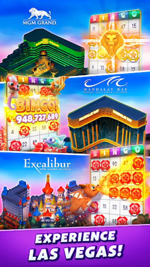 Feel the rush and sharpen your skillz in the most visually stunning bingo game in the world! With huge powerups, bingo bonuses, and massive jackpots. Have a bingo party with your friends as you daub your way through the Las Vegas strip. Play free bingo and other casino games in real Las Vegas casinos like the MGM Grand, Bellagio, Excalibur, and other iconic casinos.