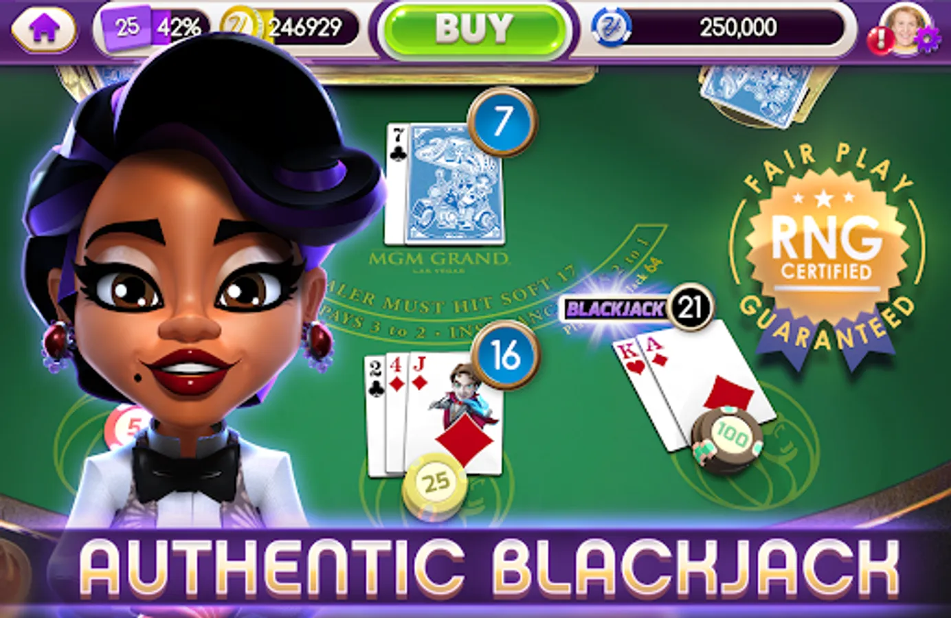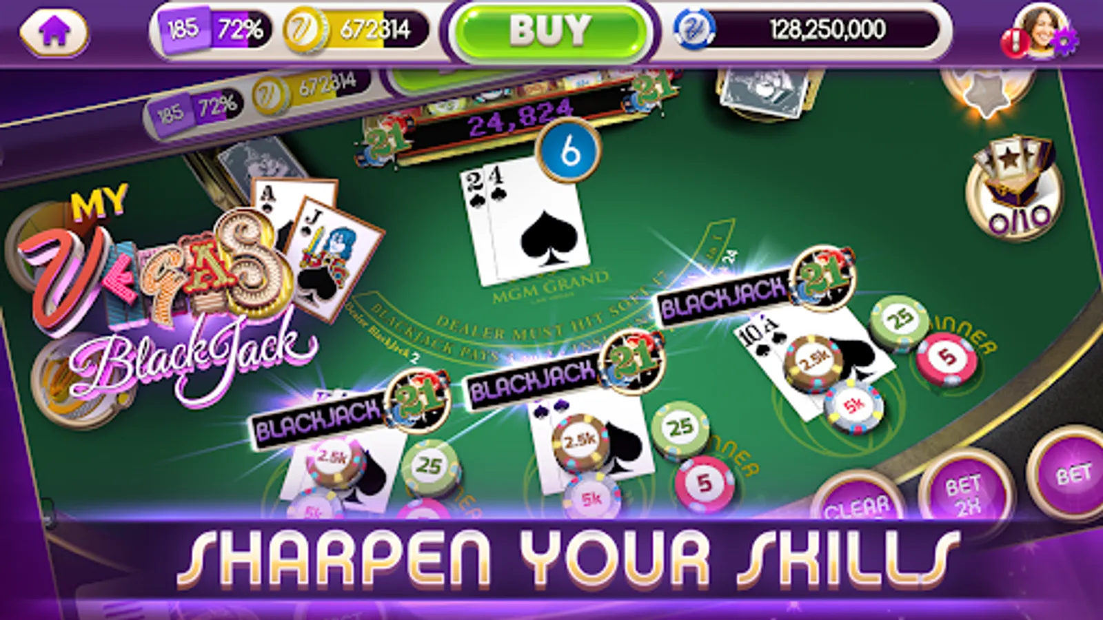 Play the Blackjack Las Vegas style classic casino app myVEGAS Blackjack -- the #1 Blackjack 21 game on App Store for free!