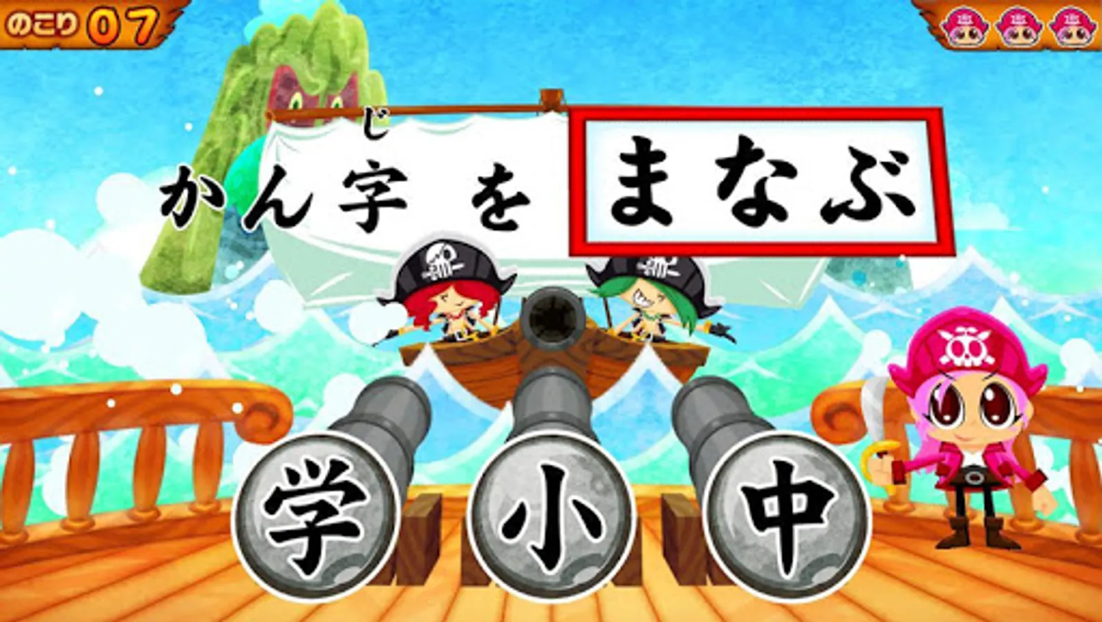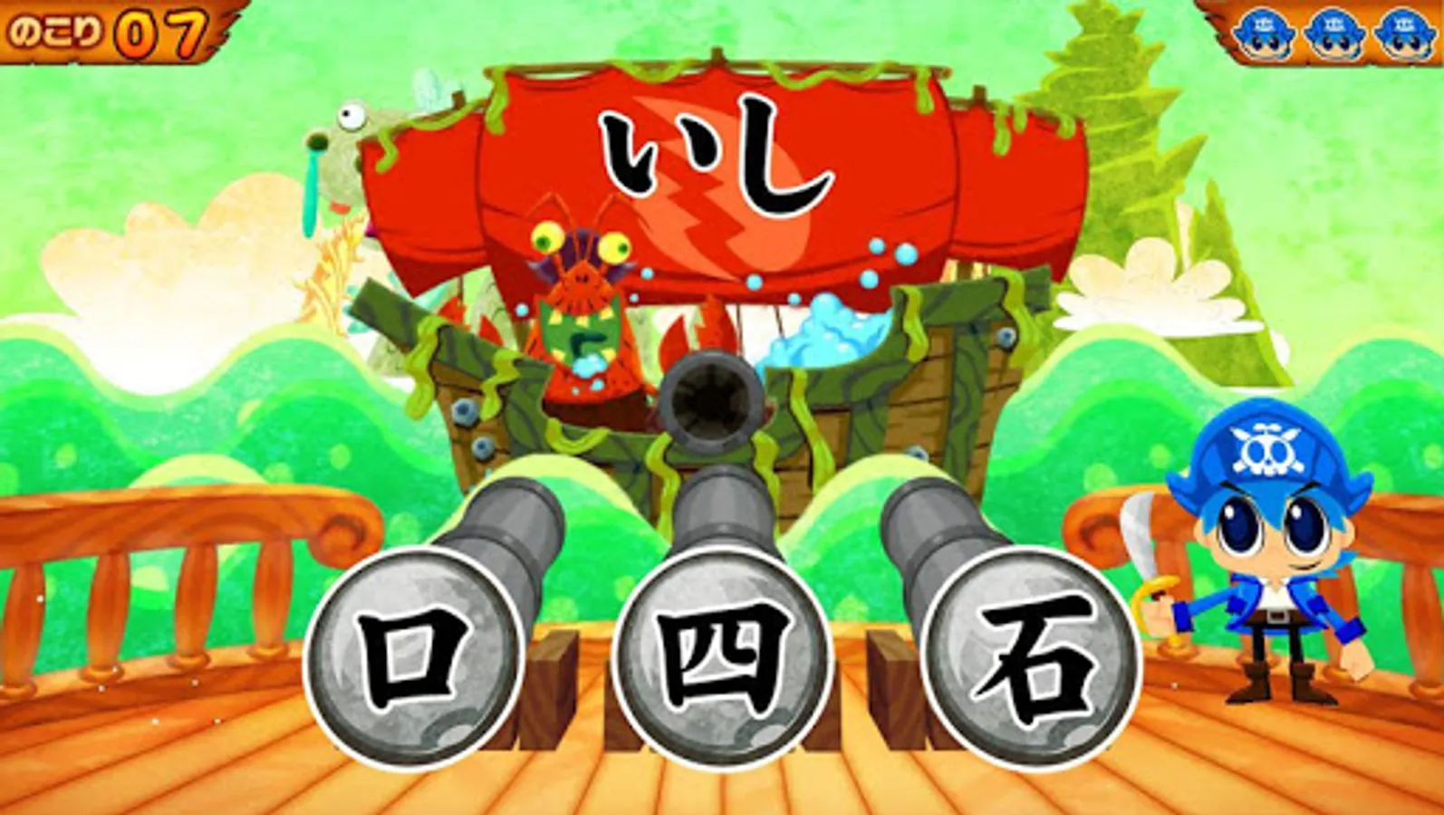 If you answer the correct reading and shape of the kanji, you can shoot a cannon at the approaching pirate ship!