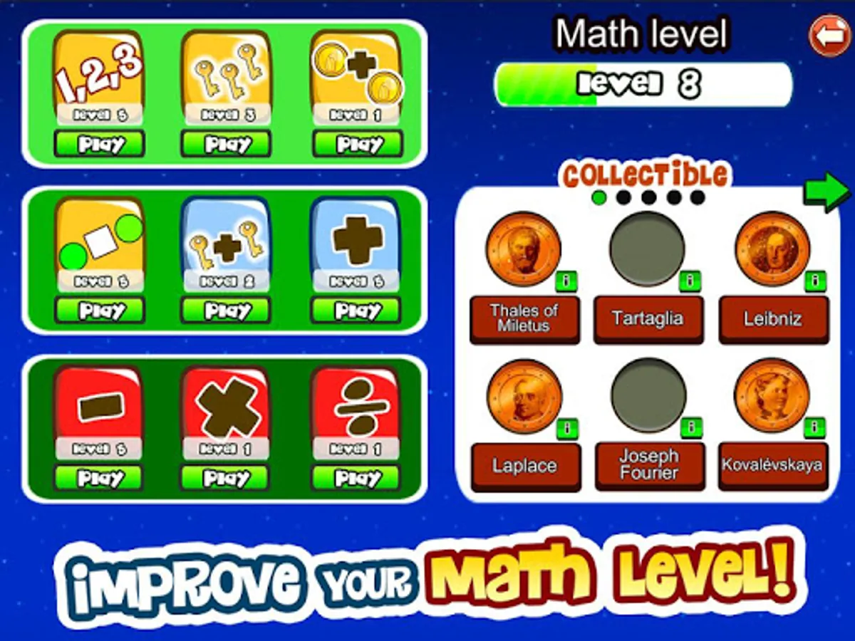 A fun edutainment application. Run, jump, count, add, substract, multiply and divide to win. It's an actual game! More than two millions of downloads!