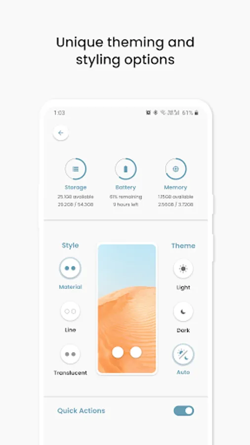 Styles is a clean and minimal KLWP Preset with unique Style options - Material, Line and Translucent.
