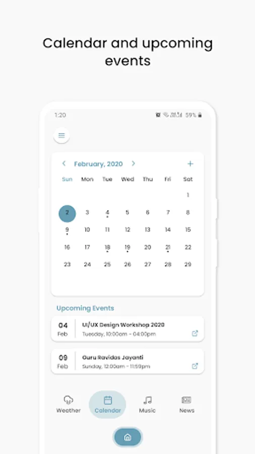 - Calendar with upcoming events