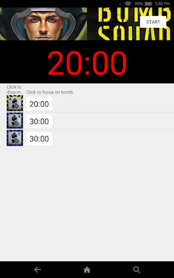 This app is a companion timer app for Tasty Minstrel Games' Bomb Squad board game. The app keeps track of the timer associated with each bomb in play, and provides ambient music and taunting audio clips to enhance the play experience.