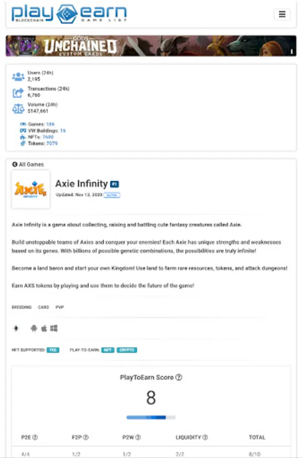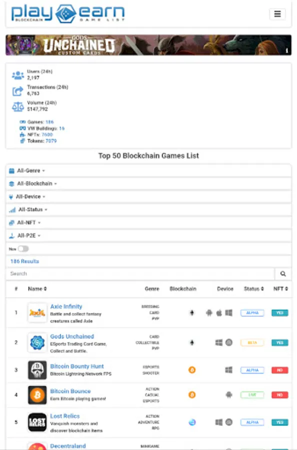 PlayToEarn is the best source to find Play-To-Earn Crypto & NFT Blockchain Games. Earn Crypto & Non-Fungible-Tokens while playing Ethereum & Bitcoin Games.