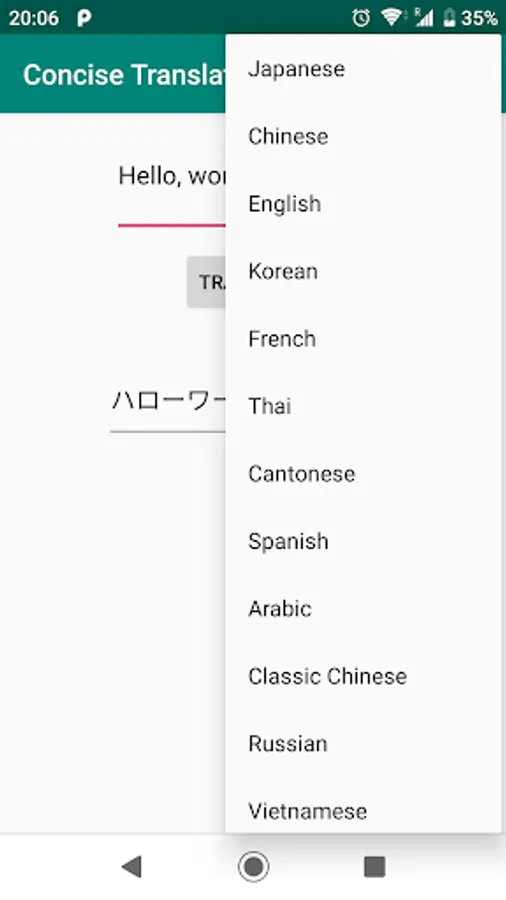 A concise interface translate app based on Baidu translate API that provide more than a dozen language translations like English, Chinese, Japanese, ect.