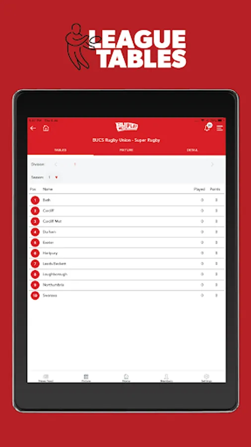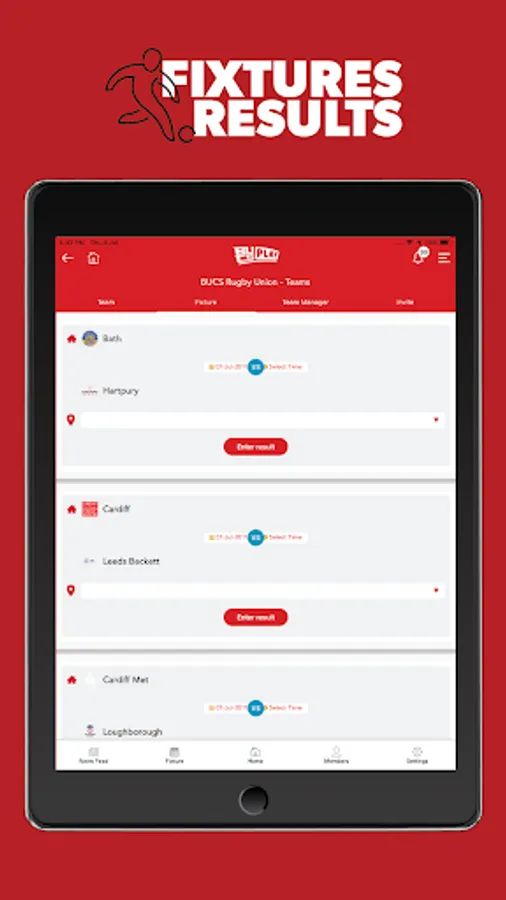 Manage your team, view fixtures, check results & league tables and enter events, all on BUCS Play.