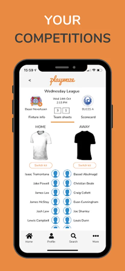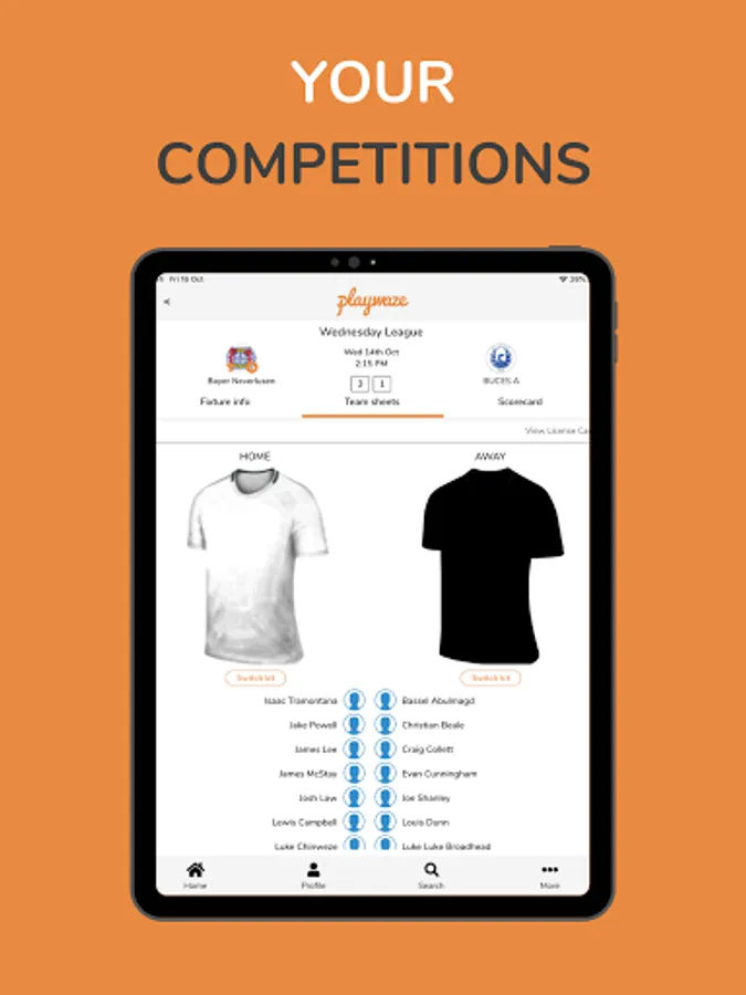 > Your Teams: Manage teams, player availability, squad selection, and match fees.