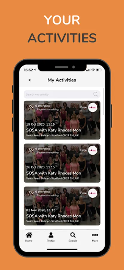 > Your Activities: Take registrations and bookings, manage capacity, track attendance and send automatic reminders to attendees.