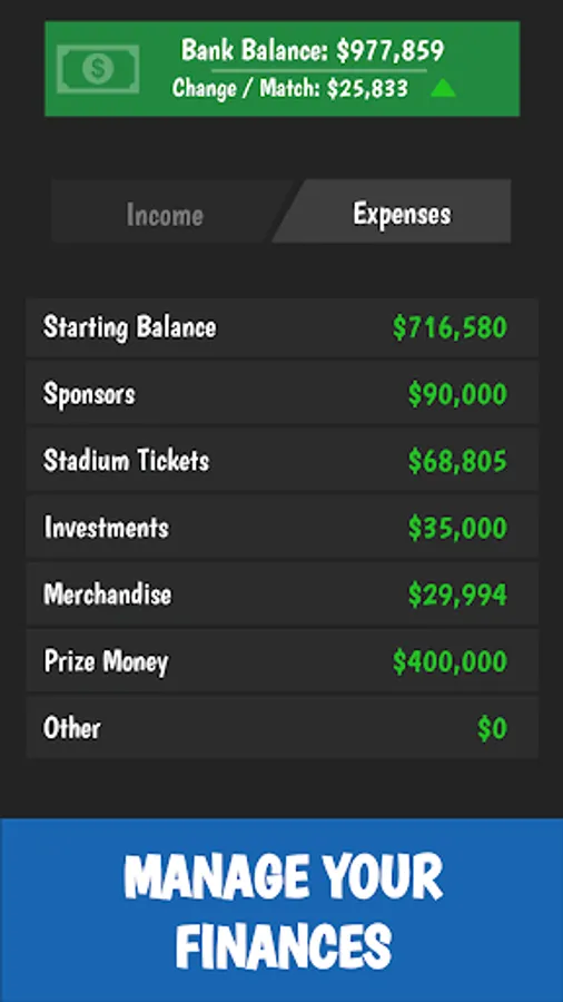 Sign sponsorships, investments & be smart about your club's finances. You won't be successful without a healthy balance sheet in this game.