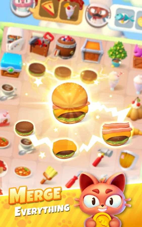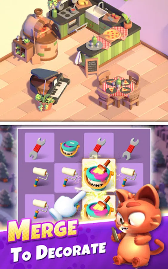 Merge hundreds of items to create whatever your kitty wants. Keep merging and collecting rewards to grow your fantasy city!