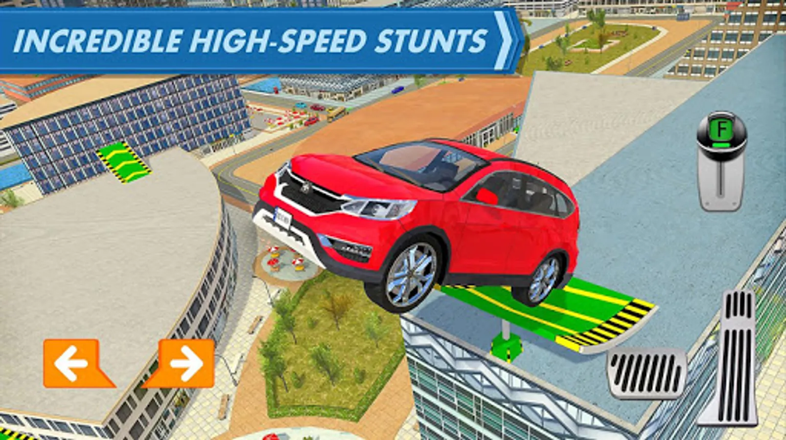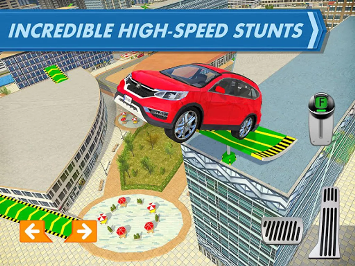 Take sharp turns, avoiding dangers and trying to reach your goal in the shortest time. Jump from building to building, laughing about other drivers who still think their car belongs on the ground. School them with your mad skills and earn stars for your progress. Find new and creative ways of using your vehicle but be careful not to crash! After all is done, remember to park it with style!