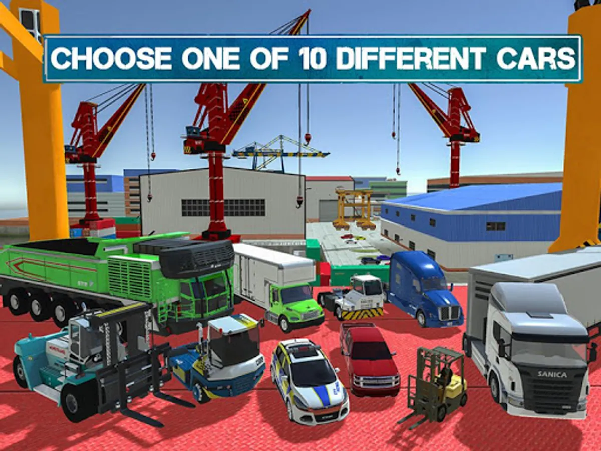 The game features a realistic port environment, where you are one of the workers. You will have to look out for traffic, watch out for cranes and other port equipment. You will drive a selection of different cars, including a forklift, a pickup truck, a trailer truck and even a police car.