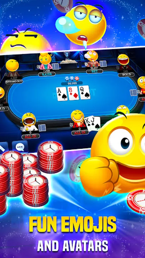 • Animated Emojis – Celebrate your latest win or bemoan a bad hand with an animated emoji. Let your opponents know EXACTLY how you feel on the card table!