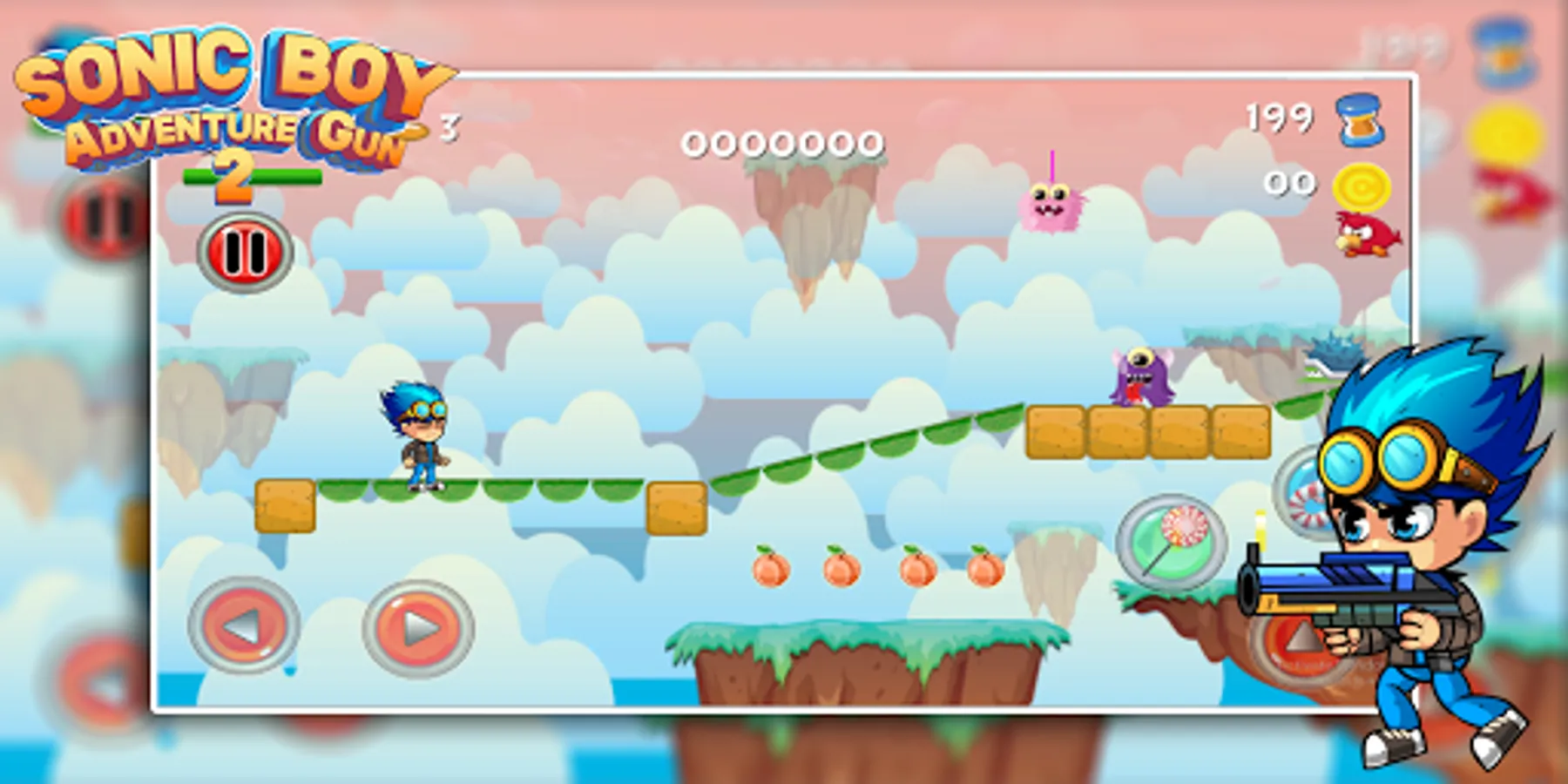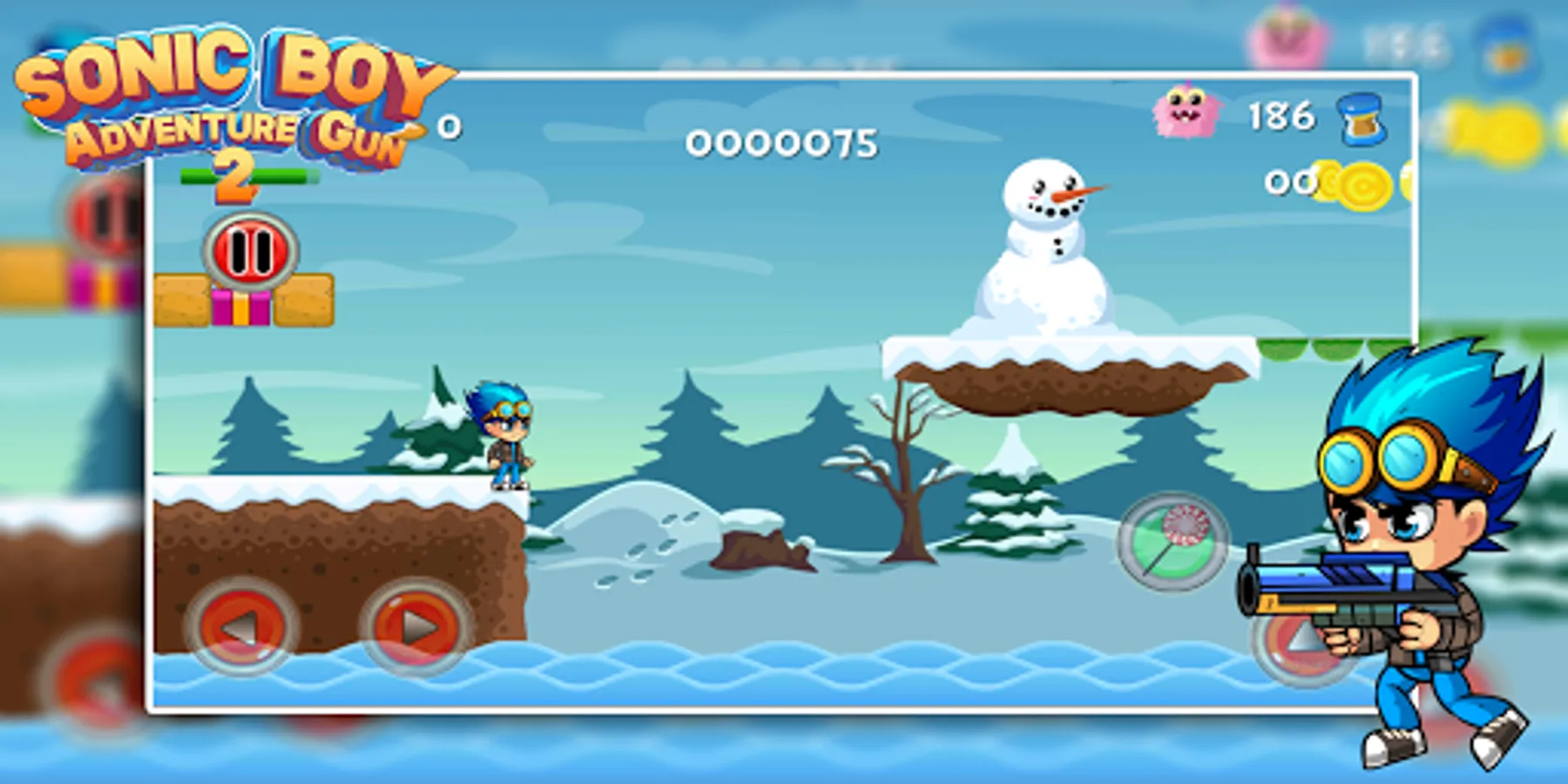 Sonic Boy Adventure Gun 2 Climb up huge mountains and stairs, fight against prehistoric enemies, avoid falling bricks, find hidden blocks and levels, collect coins and diamonds, swim through dangerous seas, explore lot of challenging and addictive jungle worlds and lands and defeat all cruel enemies and bosses.