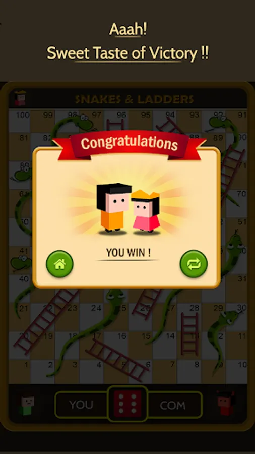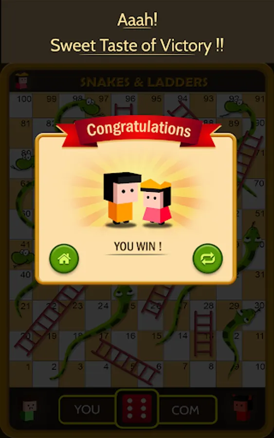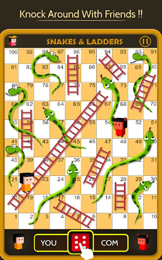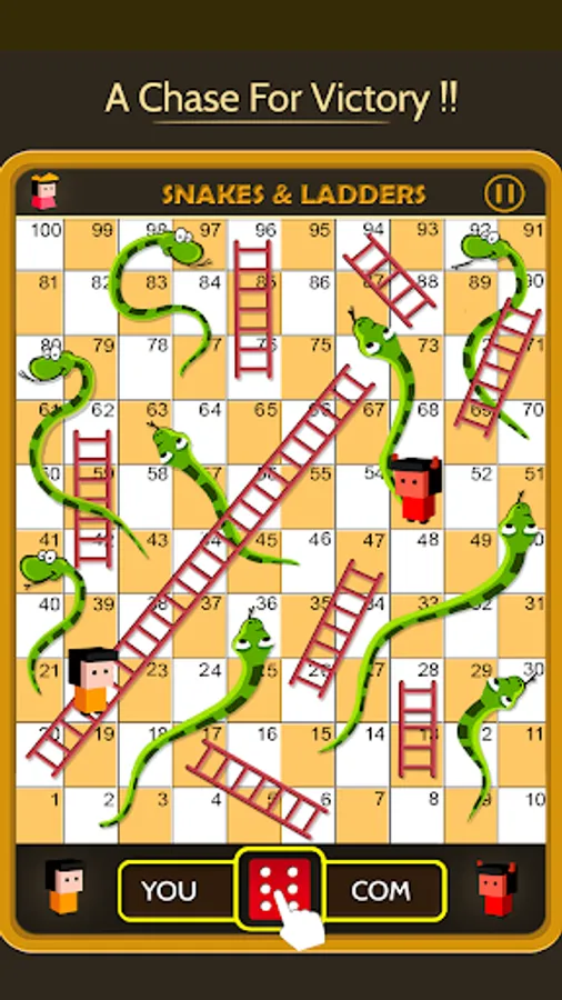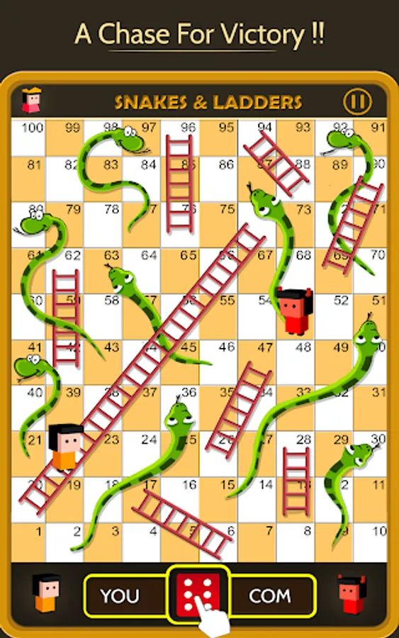This Dice game is a simple race contest based on sheer luck and is popular with young kids. The historic version had root in morality lessons, where a player's progression up the board represented a life journey complicated by virtues (ladders) and vices (snakes).
