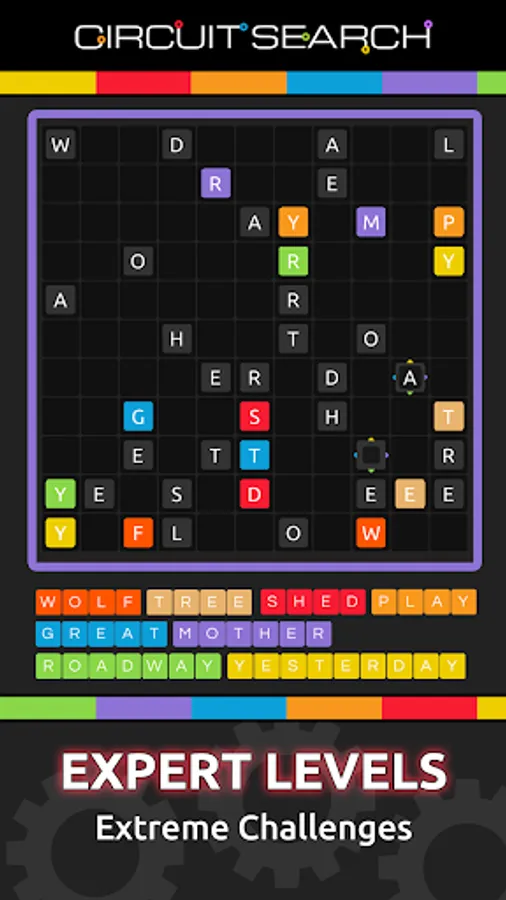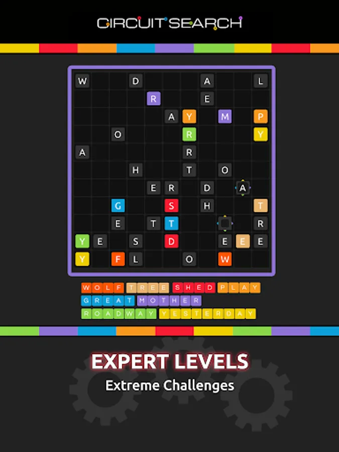 Circuit Word Search is a electrifying word search challenge game. It starts easy but quickly becomes more difficulty as you progress through the levels. Find all the words in each level.