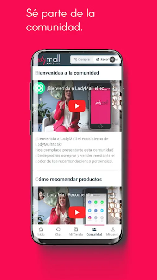 The application where you can sell, buy and earn by recommending your favorite products and services from the Ladymultitask community. Find within our community section informative videos, calls, masterclasses, special events and latest news from Ladymultitask