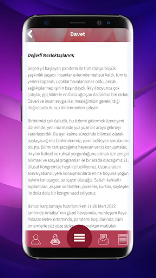 It is the Official Application of the 21st National Intensive Care Congress. Congress will be held between 17 - 20 March 2022 at Antalya Kaya Plaza Hotel. The congress will also be published online. With this application, it will be possible to follow the Intensive Care congress. It is designed for congress participation, recording and monitoring, and is under the management of the Turkish Intensive Care Association. YB2022