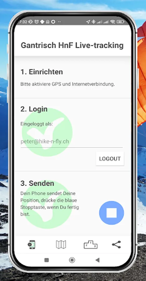 During the race, the app supports you in the simplest way by continuously sending your GPS position to our own live tracking system and gives you all the important information about the course of the race and your position. The athletes and the audience can follow everyone's positions in real time.