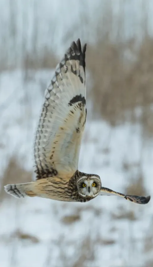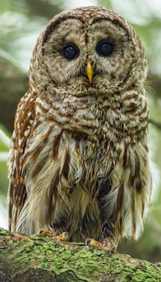 The color of owl’s feathers helps them blend into their environment ...Owls have large eyes and a flat face...