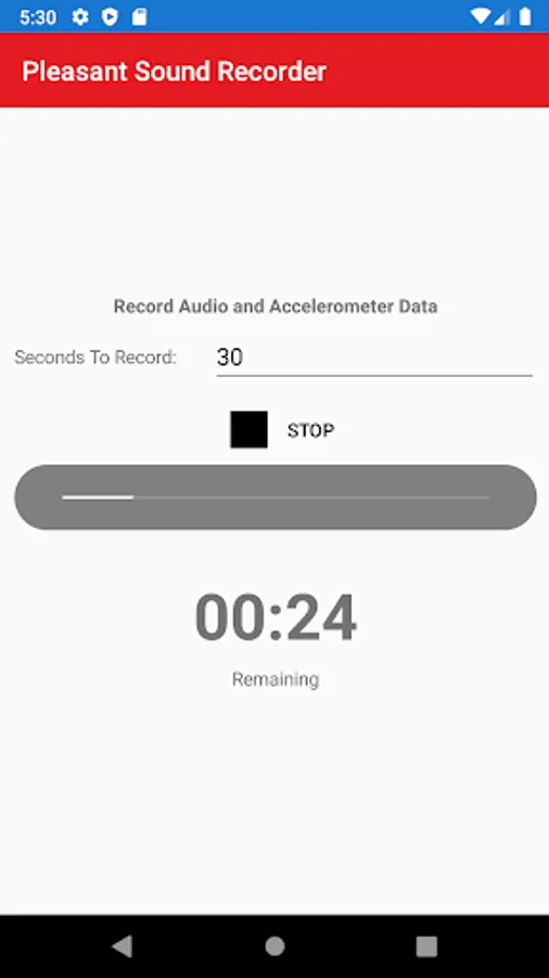 A sound recording utility that allows users to record audio from all device microphones for the specified amount of time. When recording starts, the app counts down and end the recording. This audio is then packaged in a ZIP file and made available in your devices file system. Use the recording as you see fit.