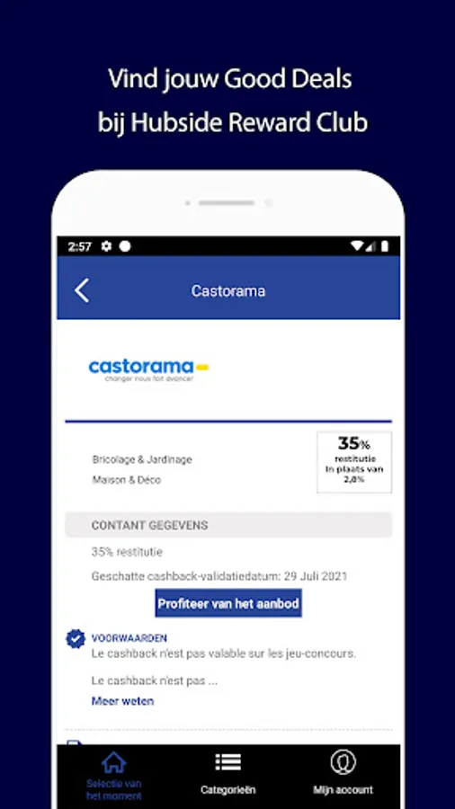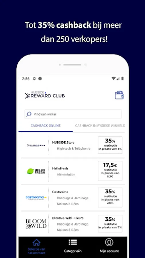 The application is reserved for Hubside Reward Club members and gives you up to 35% cashback at more than 250 merchants such as: Fnac, Darty, AliExpress, Asos, Shein, Hotels.com, ...