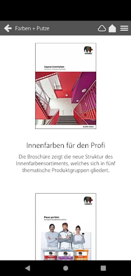 Clearly structured into product categories, you will find current information on all Caparol products as well as all available data sheets, processing instructions, consumption and valuable practical tips. Data sheets can be conveniently displayed, sent or saved using the share button.