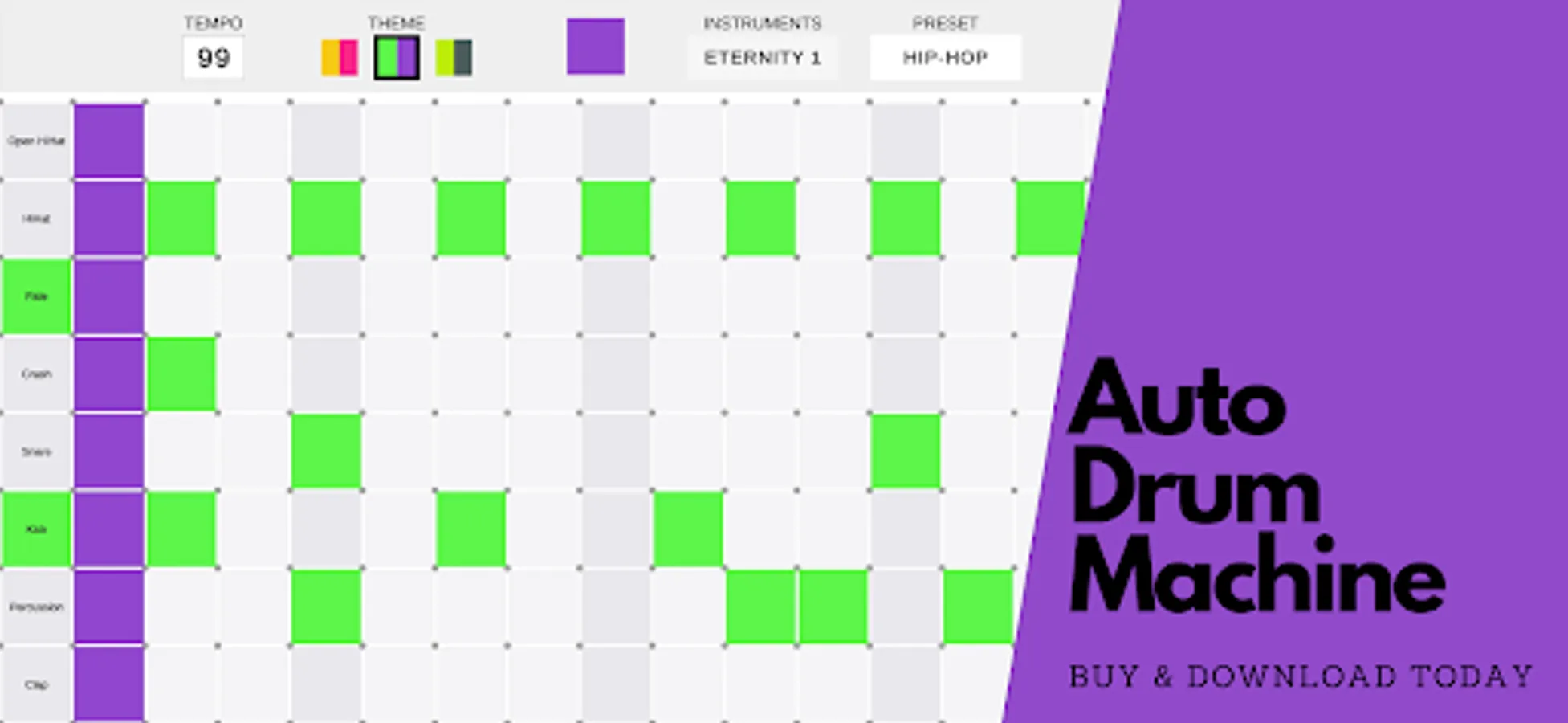 I created the drum machine for myself in the first place. The goal of auto drum machine is too me beginner-friendly. It has great sounds and audio. It offers enough configurations for new and experienced musicians.