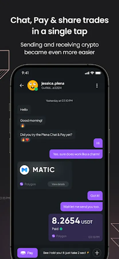 Crypto Chat and Pay: Plena introduces the world's first crypto chat and pay feature in a self-custodial wallet, revolutionizing how you send and receive your crypto.