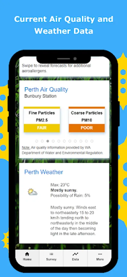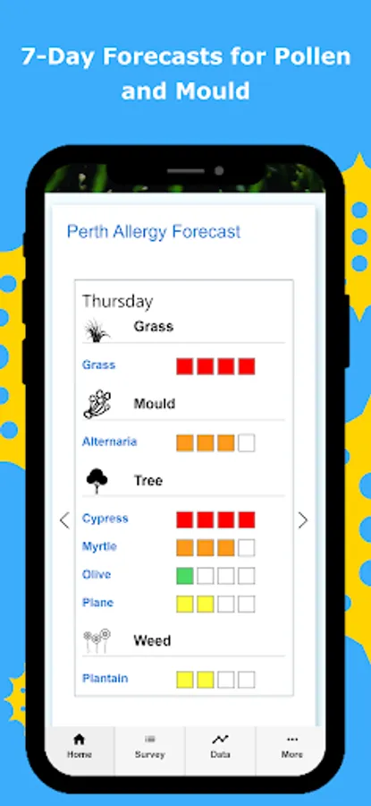 Perth Pollen also conducts research aimed at better understanding the health impacts of air quality and the different types of pollen in our air. Completing the survey regularly helps us with this important work.