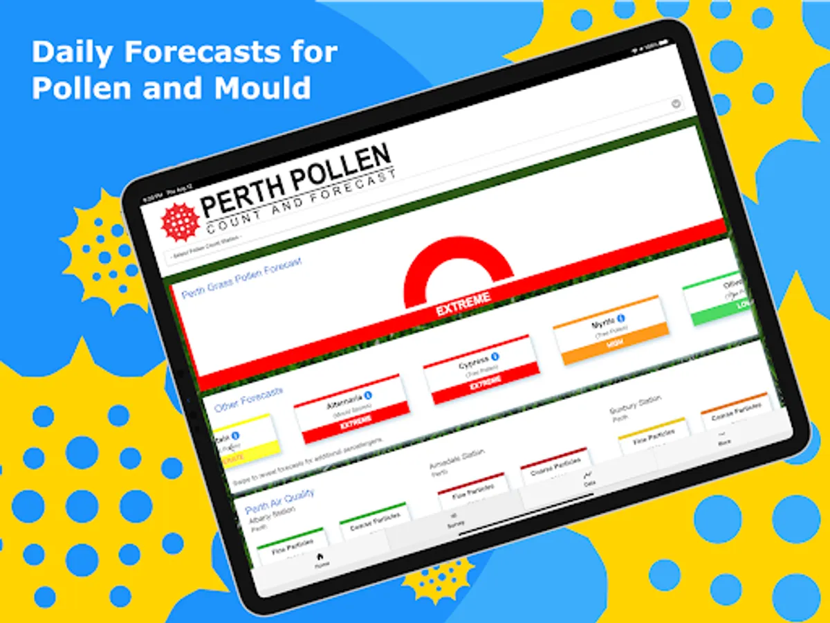 We also provide access to live air quality information and you can use the Perth Pollen App to track your hay fever symptoms to figure out which pollen types are triggering your symptoms. Our notification system can alert you when grass pollen levels are high, helping you plan your activities.