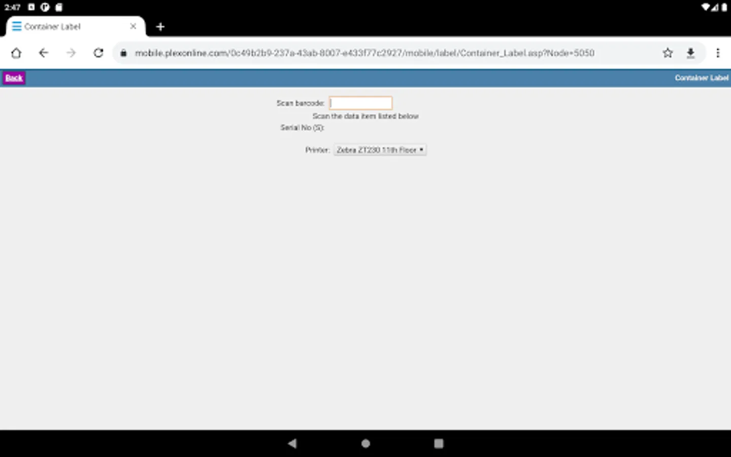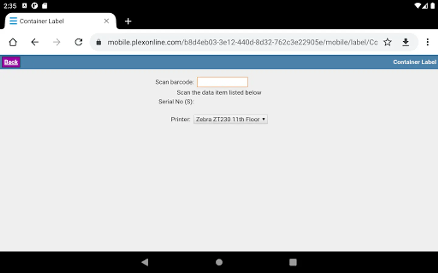 The product https://mobile.plexonline.com supports printing labels, but the browser does not provide the ability to print labels. This app registers the "zpl" scheme on the device to add label printing capability. When the browser navigates to "zpl://?ip=192.168.33.2&port=9100&data=%5EXA%5EFO20%2C20%5EA0N%2C25%2C25%5EFDHello%20world.%5EFS%5EXZ" the operating system will direct the request to this application, which then extracts:
