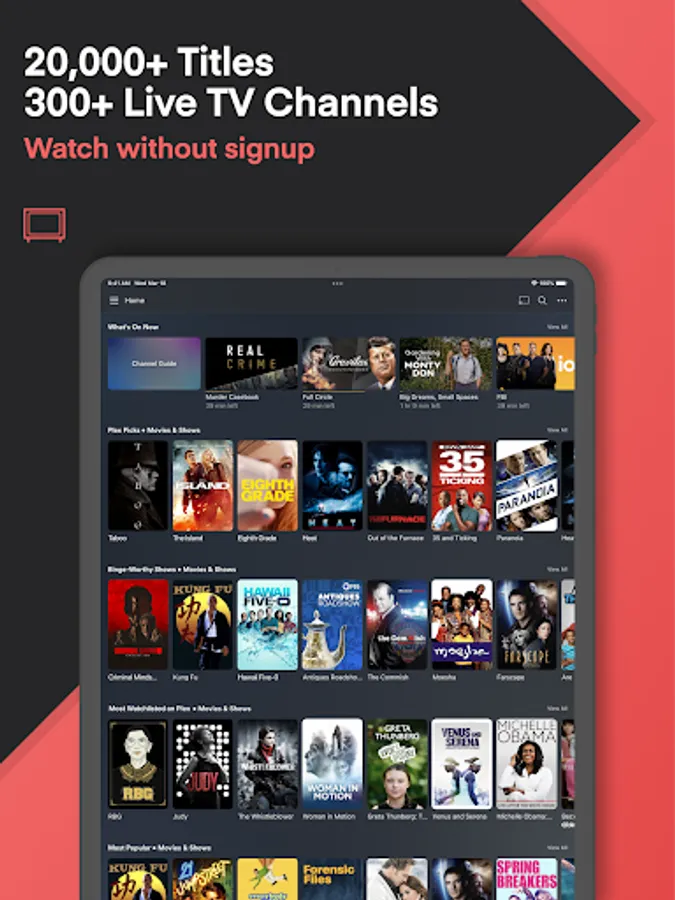- Watch TV for free with content for the whole family! Stream kid shows, news, sports, and more