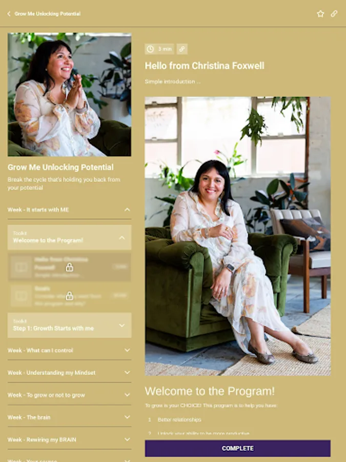 The programs in this app will be there to help you GROW, Connect with the best parts of you, LOVE more deeply, Forgive and be free, Set boundaries that help you live in positive vulnerability and connection with others.