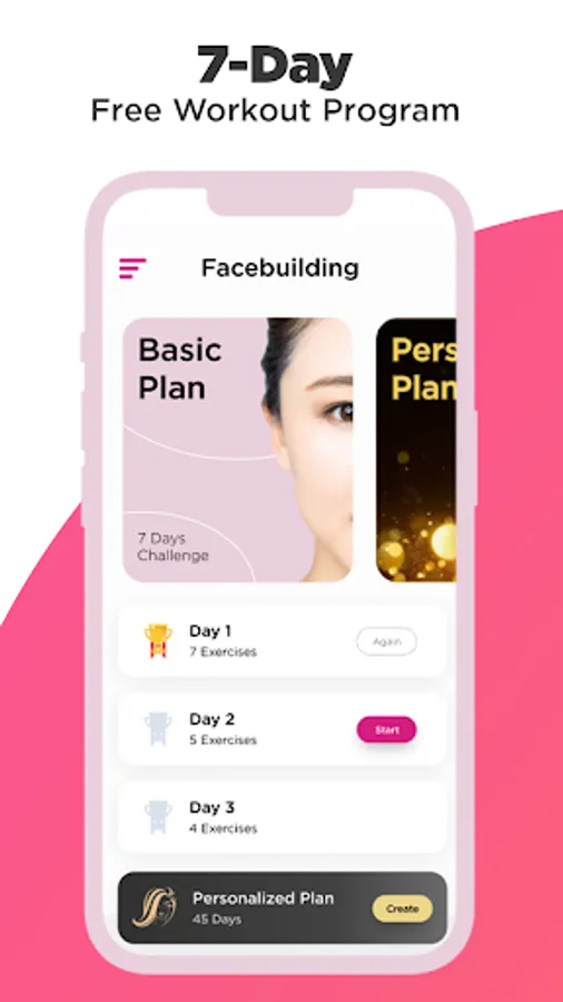 Welcome to the ultimate personalized 45-day facial yoga program! Our app offers an innovative approach to facial fitness that is customized to your unique needs and preferences. Whether you're looking to reduce wrinkles, enhance your facial contours, or simply relax and rejuvenate, our program will help you achieve your goals.