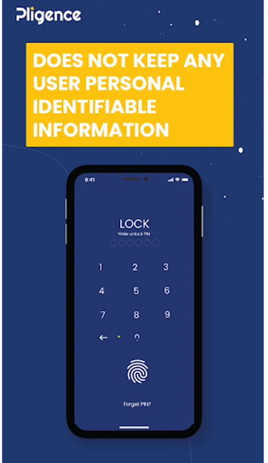 Pligence App Lock, Privacy Lock App “DOES NOT KEEP ANY USER PERSONAL IDENTIFIABLE INFORMATION (PII) NOR DOES IT TRACK OR STORE THE LOCATION OF THE USER”