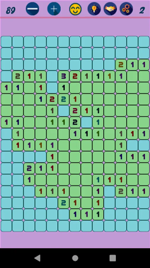 Clicking on the game board will reveal what is hidden underneath the chosen square or squares (a large number of blank squares may be disclosed in one go if they are adjacent to each other). Some squares are blank but some contain numbers (1 to 8), each number being the number of mines adjunct to the uncovered square.
