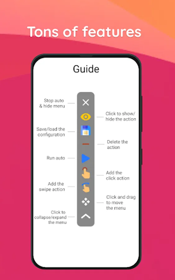 - Automatic tap, auto scroll with multiple click points, swipes, scroll
