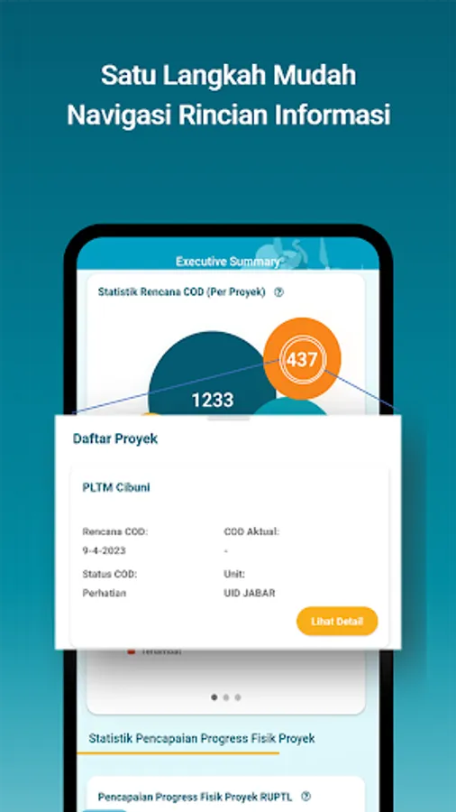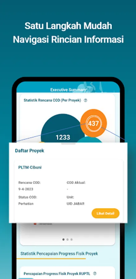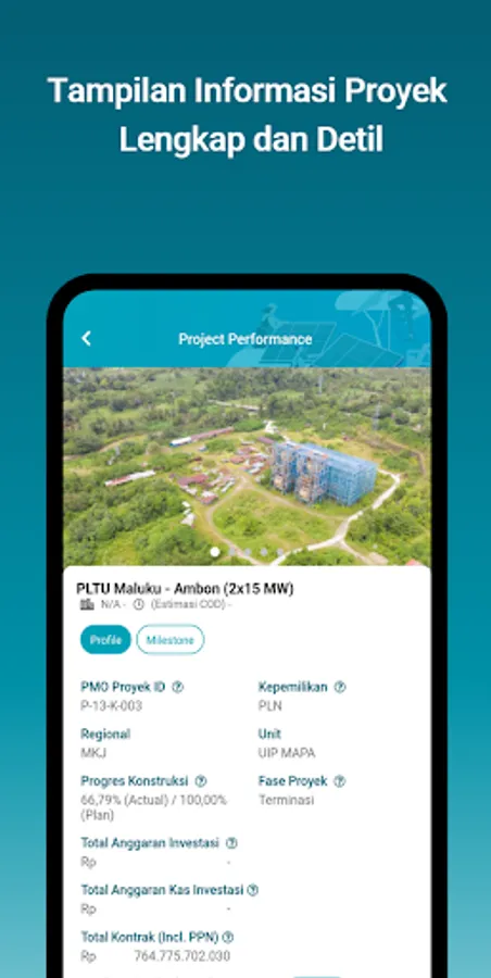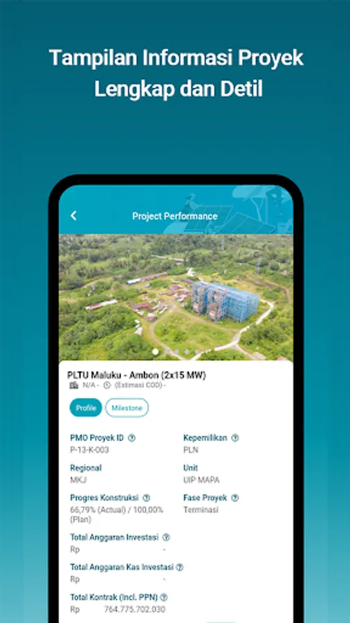 - Project Performance: Menunjukkan detail informasi proyek beserta performa dari proyek investasi PLN, baik terkait proyek investasi berbasis RUPTL ataupun Non RUPTL.