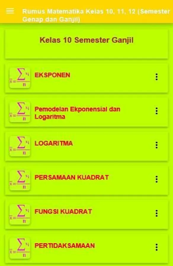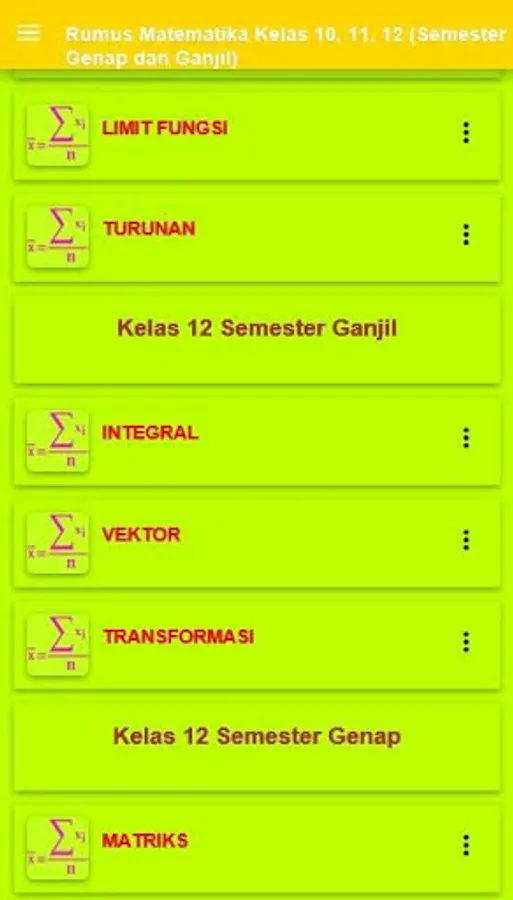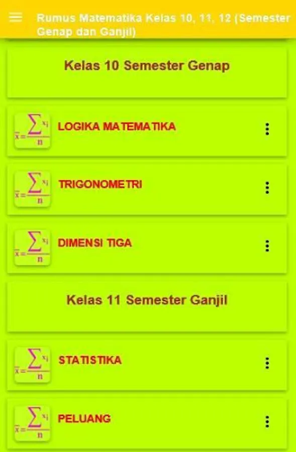 Often problems occur at high school students in completing high school math problems is not because they do not know the formula but because of lack of time to resolve the matter. To bridge that then I took the initiative to draw up a summary module and high school math formula to assist and familiarize students with a high school mathematics to solve problems more quickly and effectively.