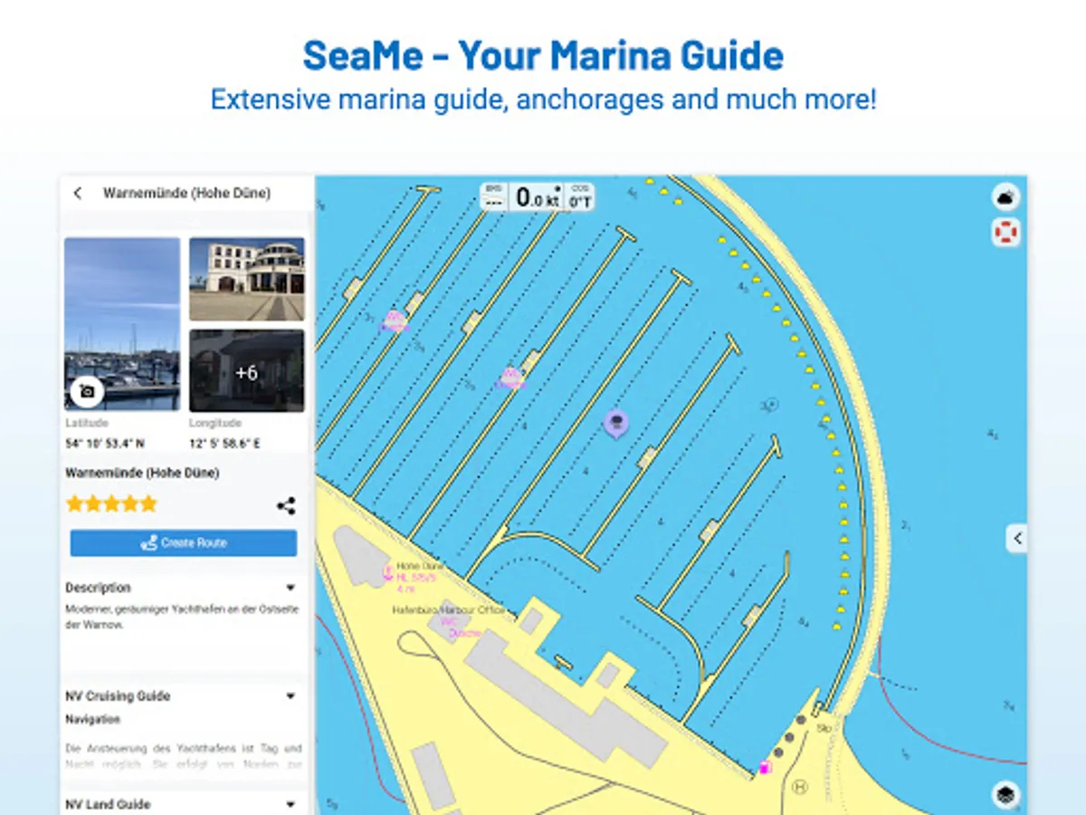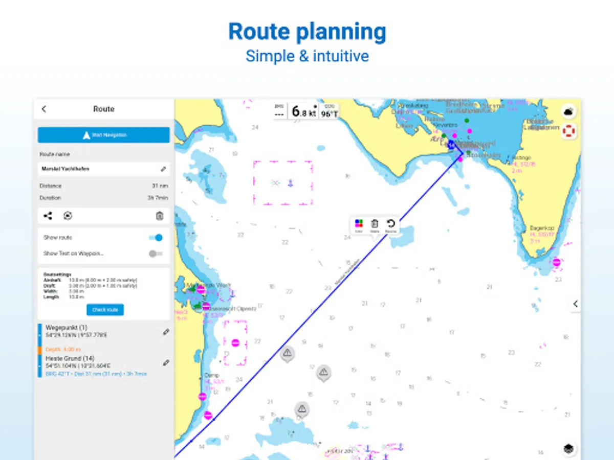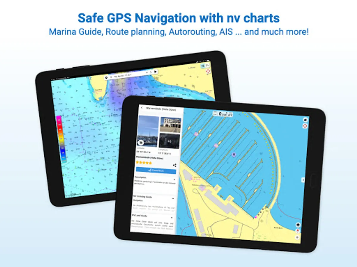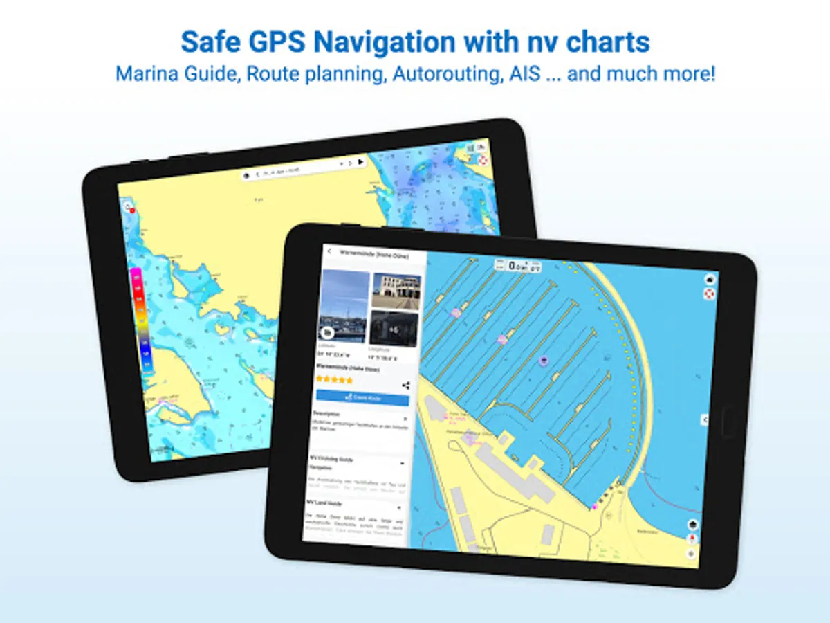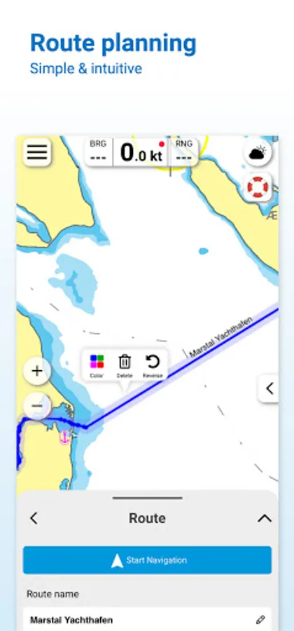 The latest information is essential for safe navigation on the water. With the NV Charts App you have the possibility to become part of the Seame boating community. You can now add marinas, anchorages and navigation warnings to the digital chart and also add and share interesting places beyond navigation, such as restaurants or points of interest with pictures. Others can respond directly with comments. The continuously edited content can be downloaded directly to be available offline. In order to make all information easily accessible, we have improved the search function: You can explore the surroundings and search directly for place names as well as anchorages, harbours, ramps, waypoints, cranes, petrol stations, or tide stations. In addition, an auto-routing function has been integrated, which allows you to navigate directly to your destination.
